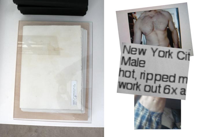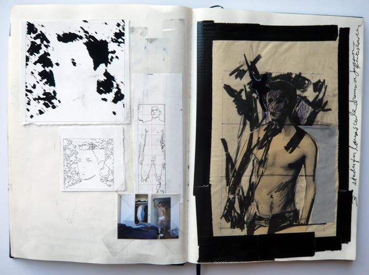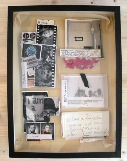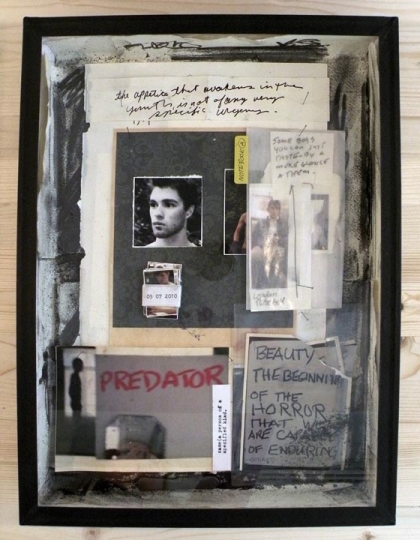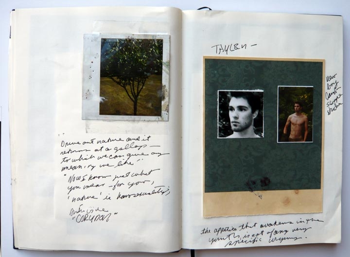 Employing a strategy of an investigative reporter, I gather evidence delineating a landscape of themes and narrative that begin to justify my behavior, actions and desires as a gay man in society. The objects/subjects on display — drawings, notebooks, photographs, documents, video, (and, in particular, one beautiful boy) are introduced as tangible evidence exposing a compulsive desire to flirt with the subject as object and to fall in love with that subject. With self-referential and self-conscience poetic aspirations I objectify my subjects. I not only fall in love with the subject as object but I fall in love with the falling in love. The human aspect pulls me in and the newly created object becomes the subject of my desire. The tension that is present is that the “objects” are human. I try use each new body of work to continue exploring my willingness to turn self-witness, and go beyond the mere confessional. Who is the real subject here? By speaking with and from my heart I believe I speak to, and of, our shared human condition.
